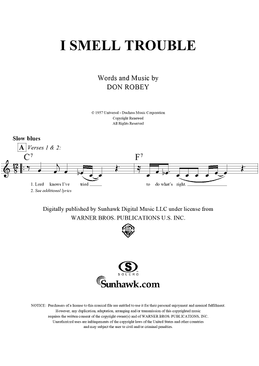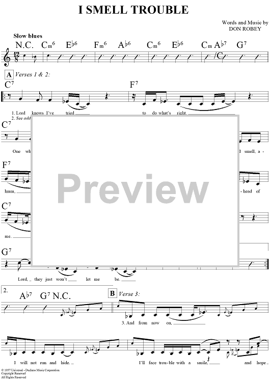 Digital Sheet Music for I Smell Trouble by Don Robey scored for Lead Sheet; id:291325