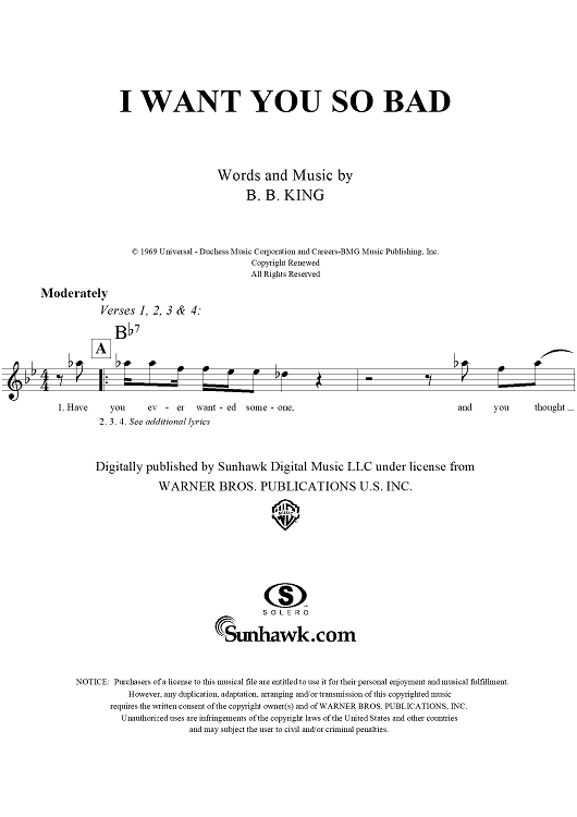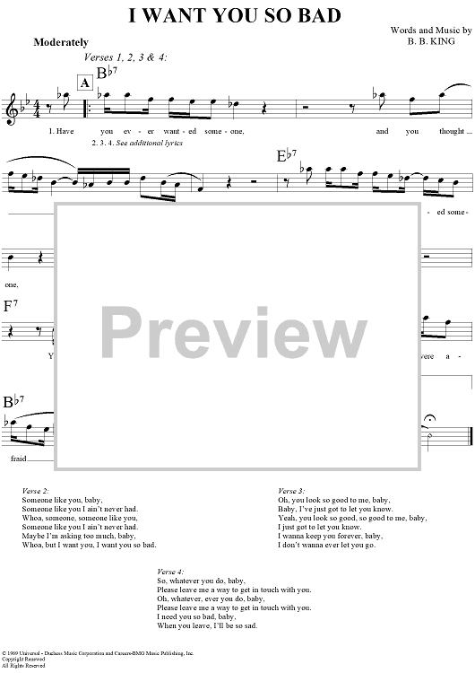Digital Sheet Music for I Want You So Bad by B.B. King scored for Lead Sheet; id:291332