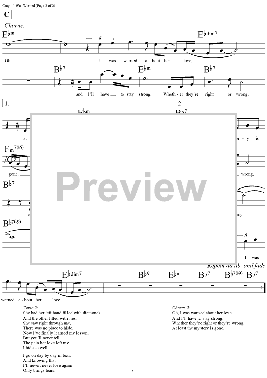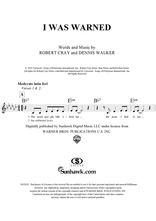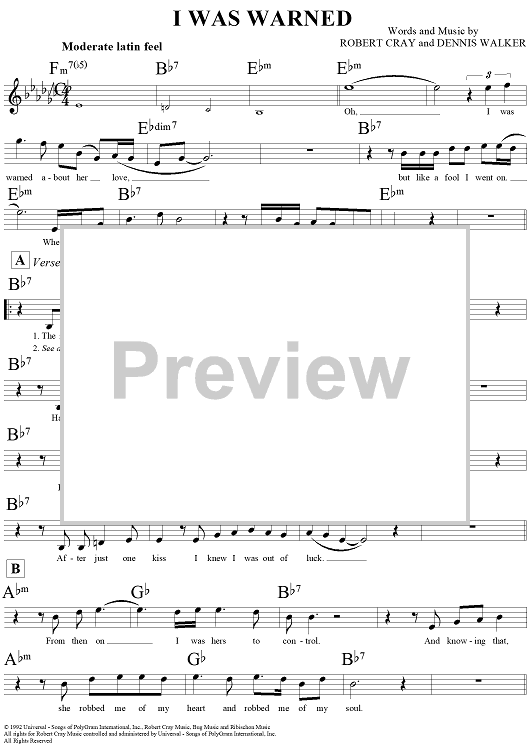 Digital Sheet Music for I Was Warned by Robert Cray, Dennis Walker scored for Lead Sheet; id:291331