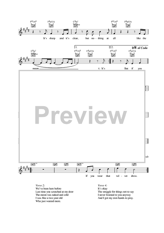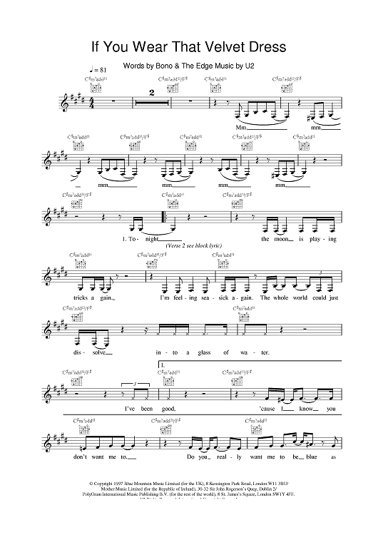 Digital Sheet Music for If You Wear That Velvet Dress by U2 scored for Lead Sheet; id:376446