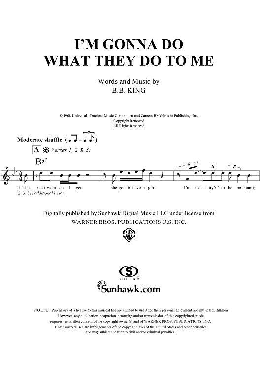 "I'm Gonna Do What They Do to Me" Sheet Music by B.B. King
