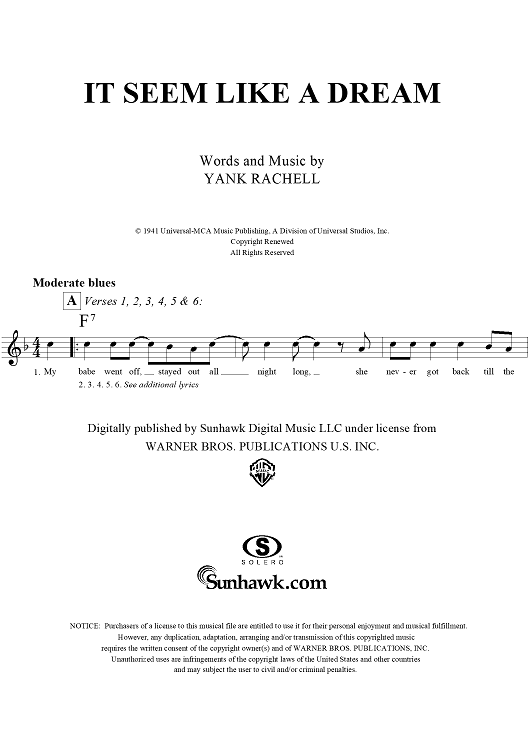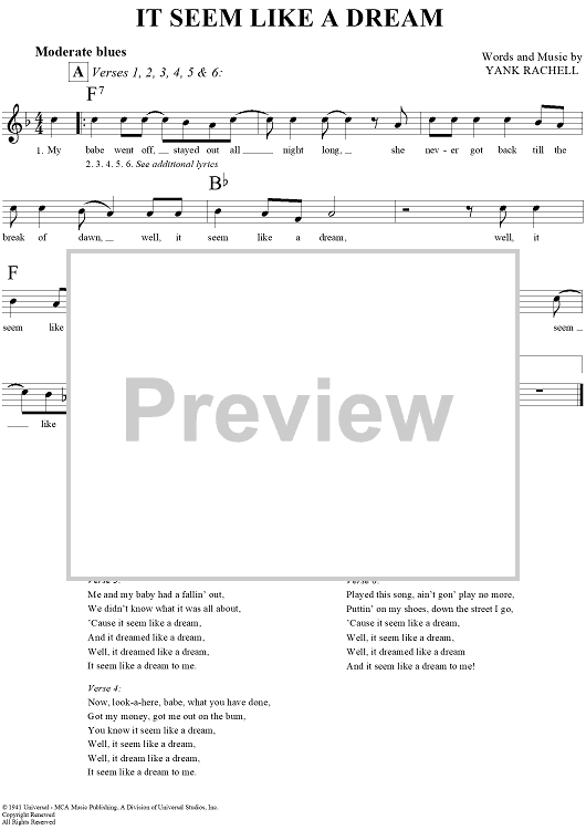Digital Sheet Music for It Seem Like a Dream by Yank Rachell scored for Lead Sheet; id:291398