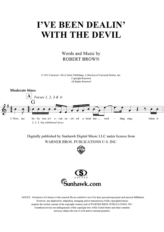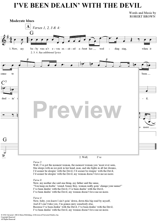 "I've Been Dealin' With the Devil" Sheet Music by Robert Brown