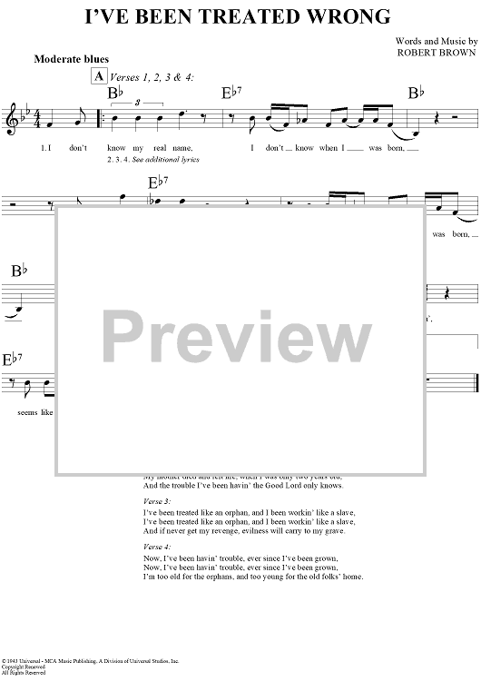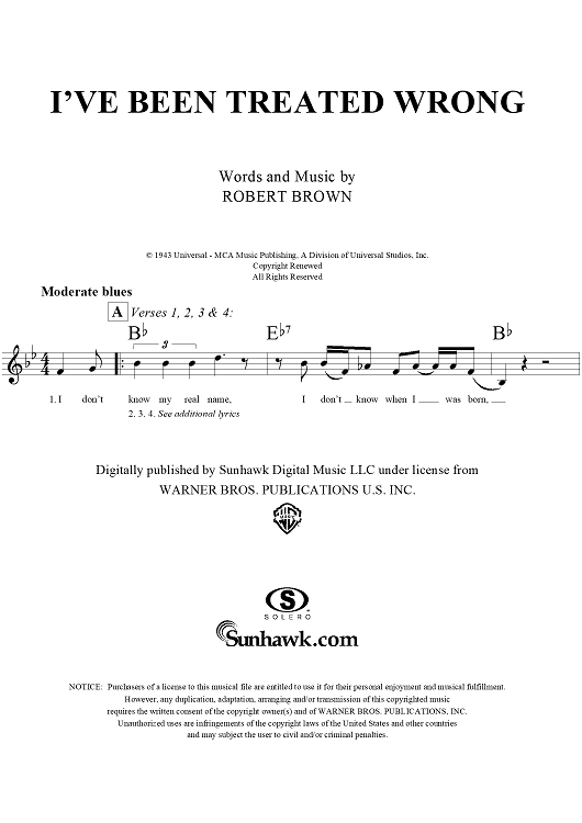 Digital Sheet Music for I've Been Treated Wrong by Robert Brown scored for Lead Sheet; id:291359