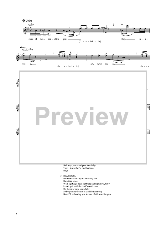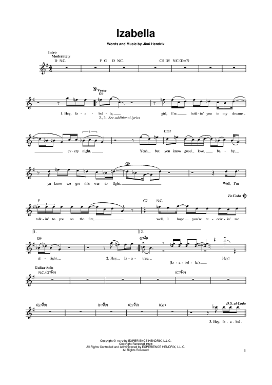 Digital Sheet Music for Izabella by Jimi Hendrix scored for Lead Sheet; id:374256