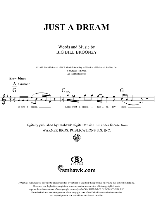 "Just a Dream" Sheet Music by Big Bill Broonzy