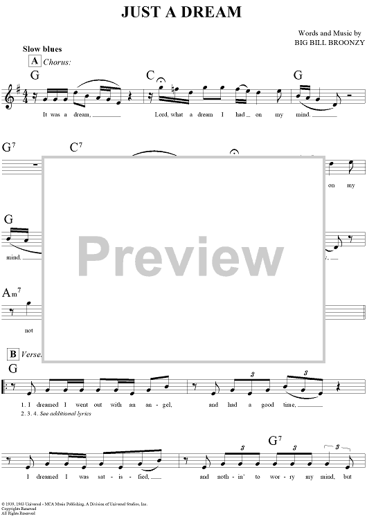 Digital Sheet Music for Just a Dream by Big Bill Broonzy scored for Lead Sheet; id:291401