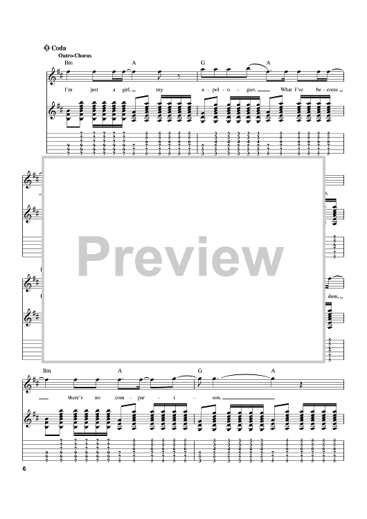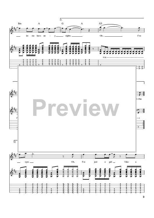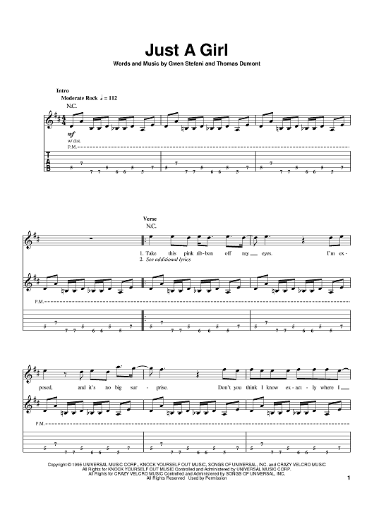 Digital Sheet Music for Just A Girl by No Doubt, Tom Dumont, Gwen Stefani scored for Guitar Tab; id:389880