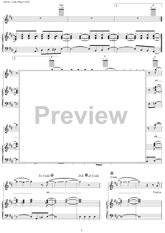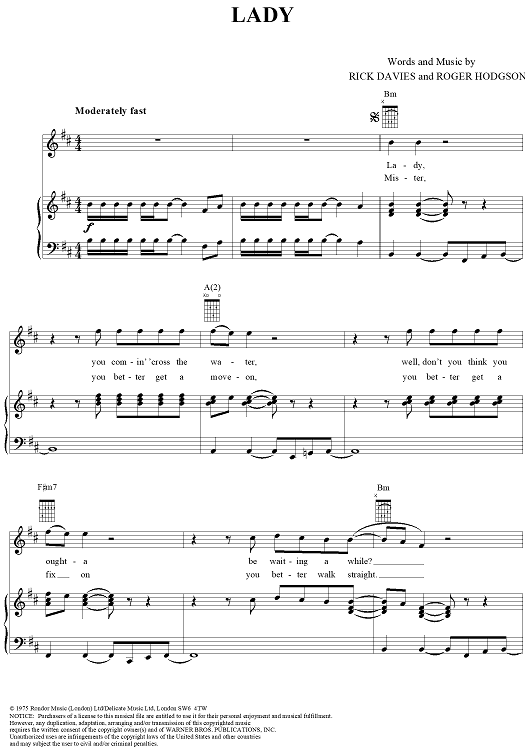 Digital Sheet Music for Lady by Rick Davies, Roger Hodgson, Supertramp scored for Piano/Vocal/Chords; id:124121