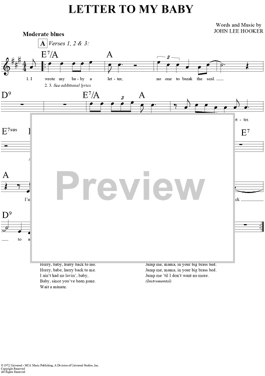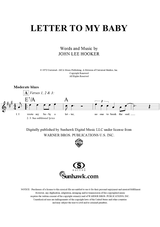 Digital Sheet Music for Letter to My Baby by John Lee Hooker scored for Lead Sheet; id:291481