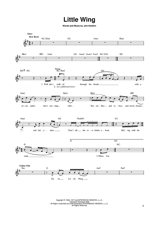 "Little Wing" Sheet Music by Stevie Ray Vaughan