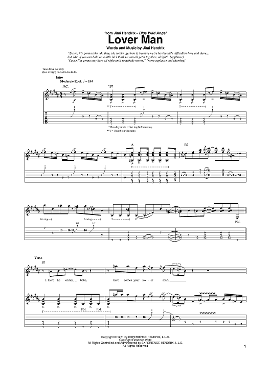 Digital Sheet Music for Lover Man by Jimi Hendrix scored for Guitar Tab; id:385258