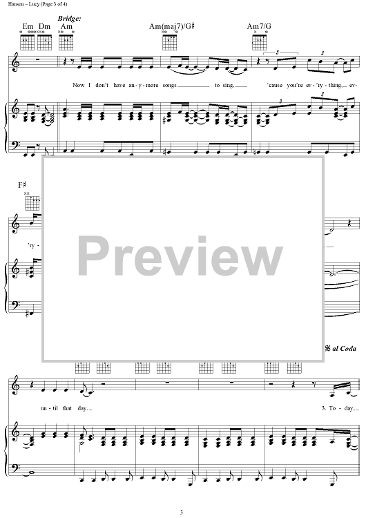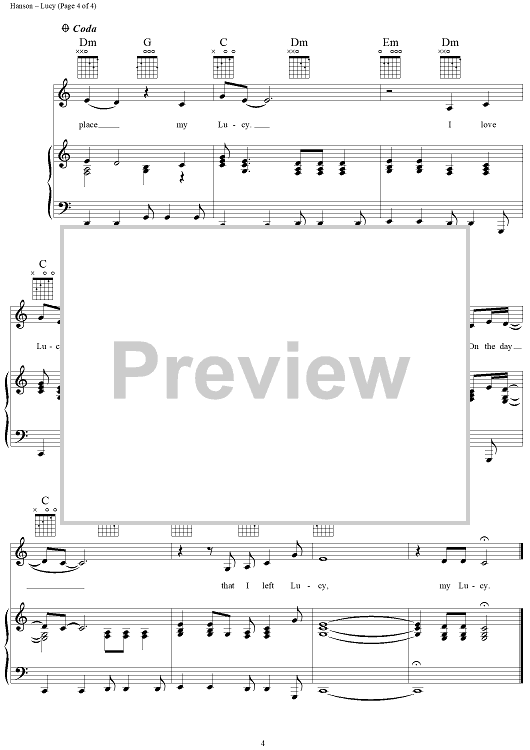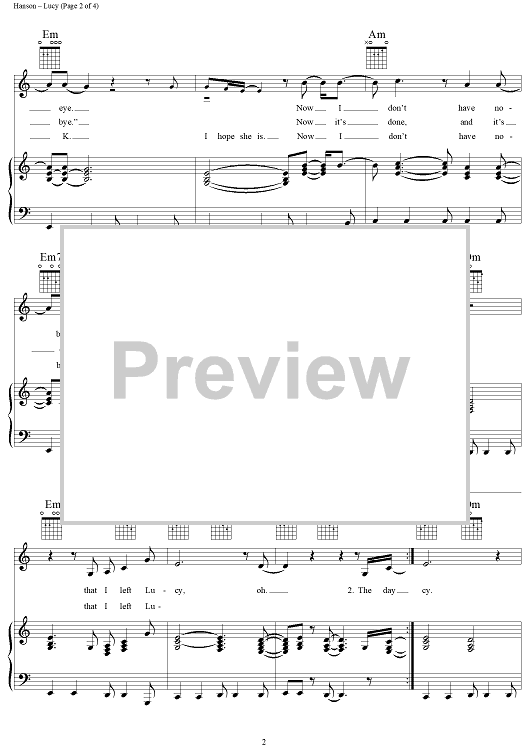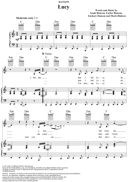 Digital Sheet Music for Lucy by Isaac Hanson, Taylor Hanson, Zac Hanson, Mark Hudson, Hanson scored for Piano/Vocal/Chords; id:111555