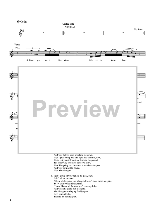 Digital Sheet Music for Machine Gun by Jimi Hendrix scored for Lead Sheet; id:374316