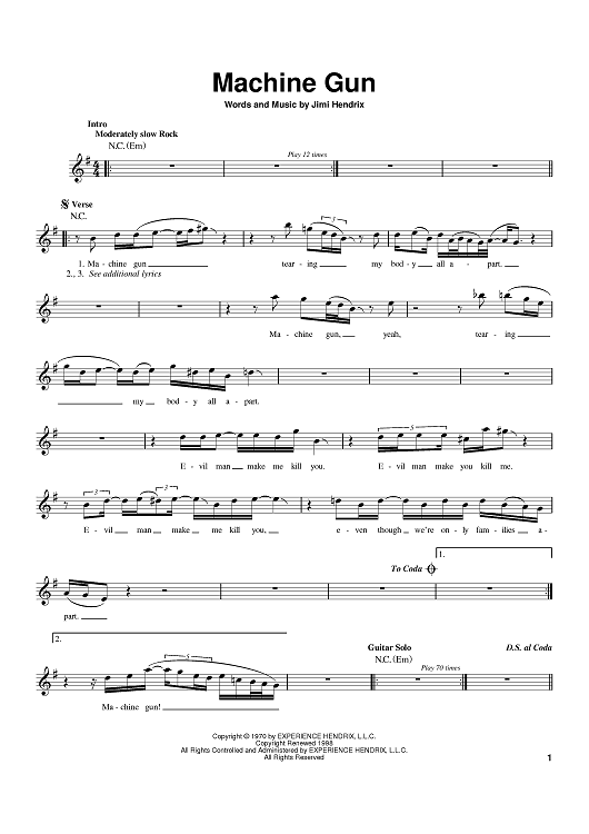 "Machine Gun" Sheet Music by Jimi Hendrix