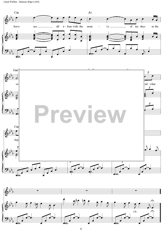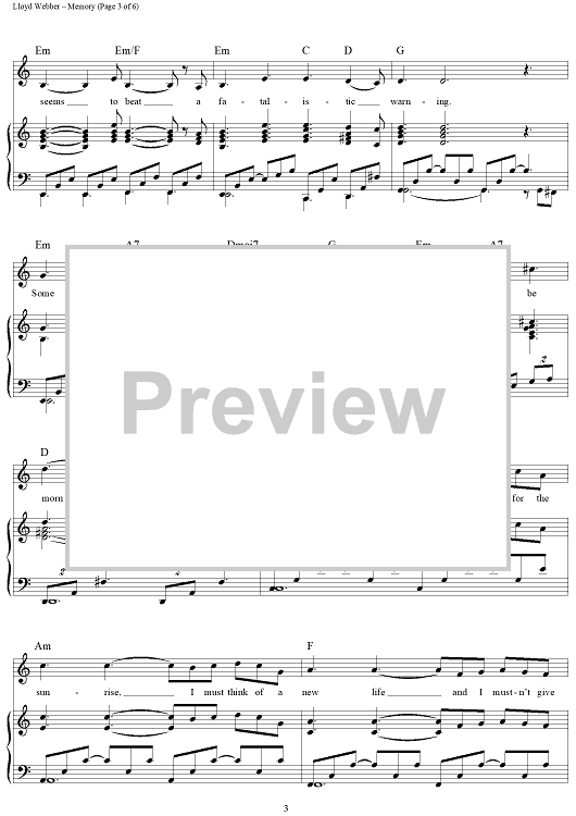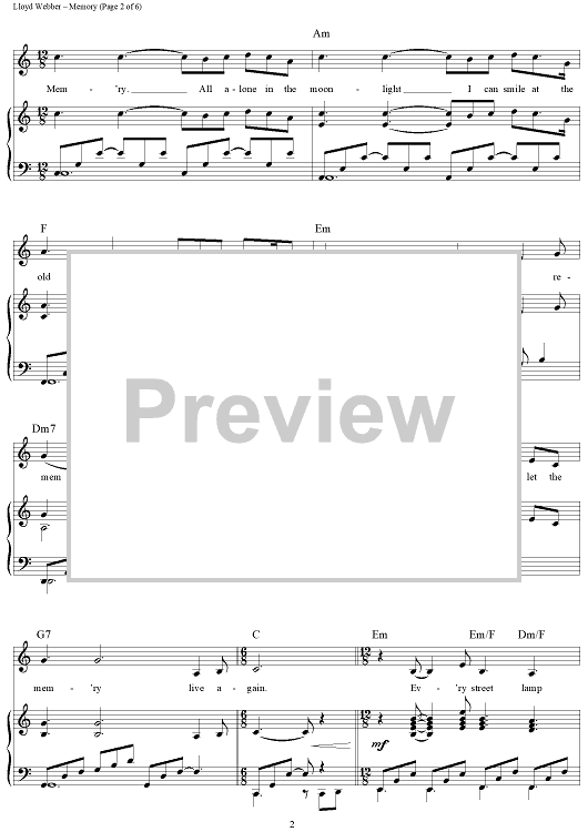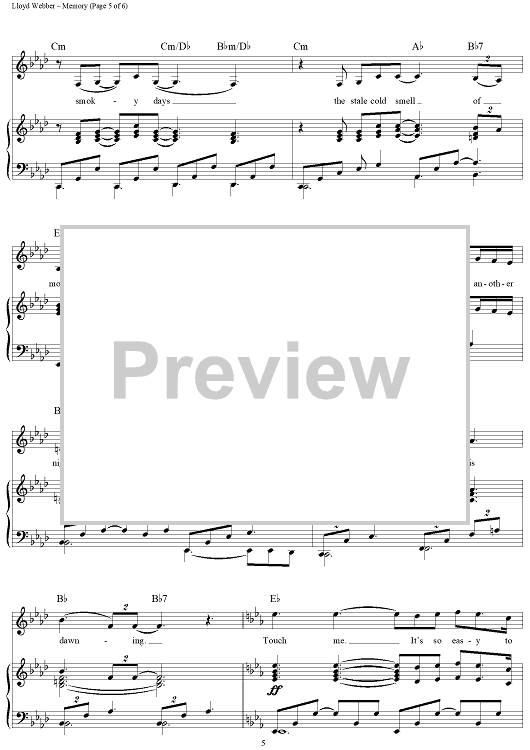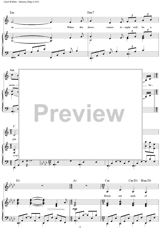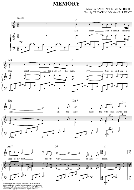 Digital Sheet Music for Memory by Andrew Lloyd Webber, Trevor Nunn, T.S. Eliot, Barbra Streisand scored for Piano/Vocal/Chords; id:365240