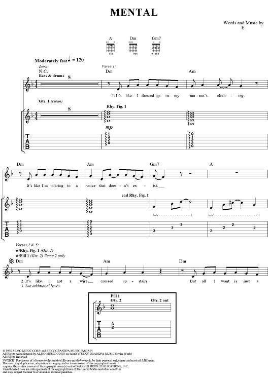 "Mental" Sheet Music by Eels