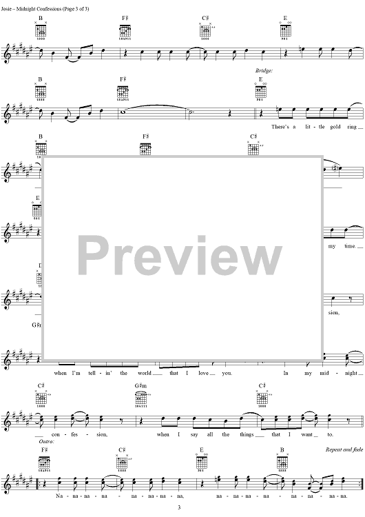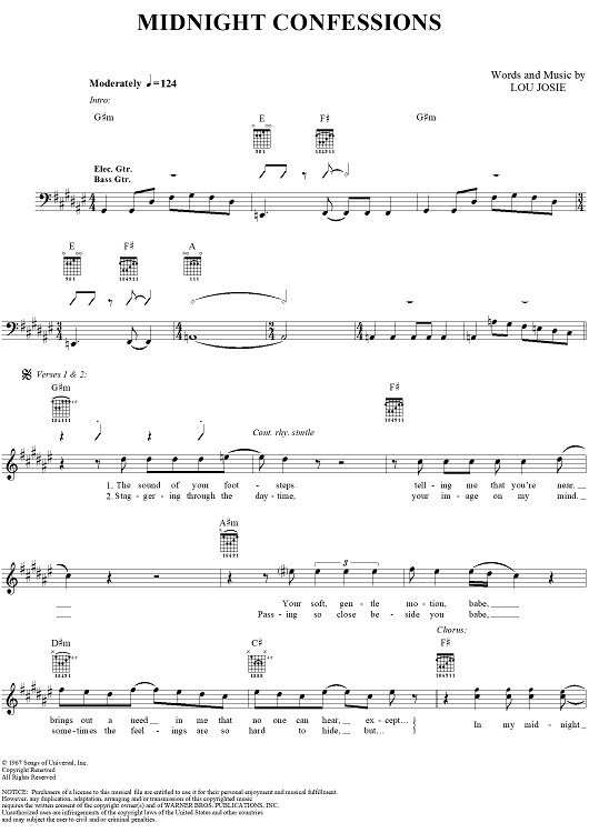Digital Sheet Music for Midnight Confessions by The Grass Roots, Lou Josie scored for Guitar Tab/Vocal; id:303171