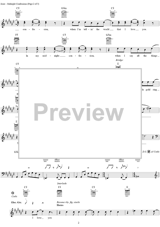 "Midnight Confessions" Sheet Music by The Grass Roots