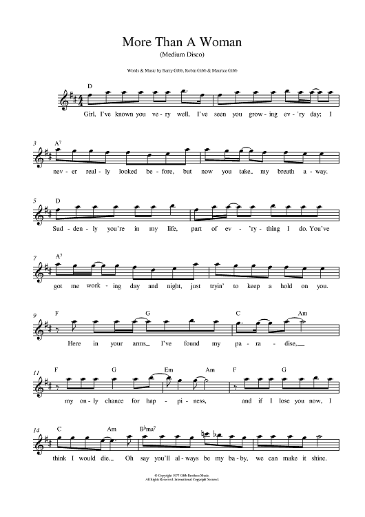Digital Sheet Music for More Than A Woman by Bee Gees, B GIBB, M GIBB, R GIBB scored for Lead Sheet; id:380673