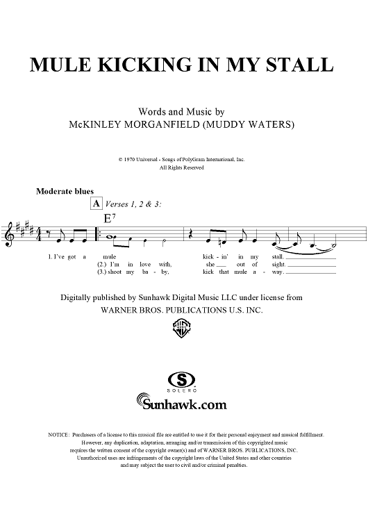 "Mule Kicking in My Stall" Sheet Music by Muddy Waters