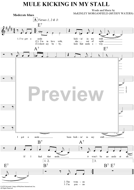 Digital Sheet Music for Mule Kicking in My Stall by Muddy Waters scored for Lead Sheet; id:291519