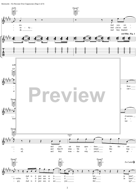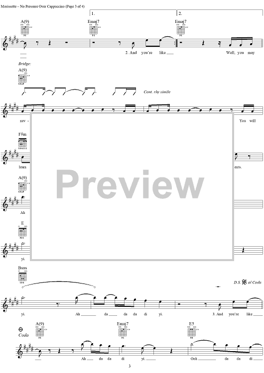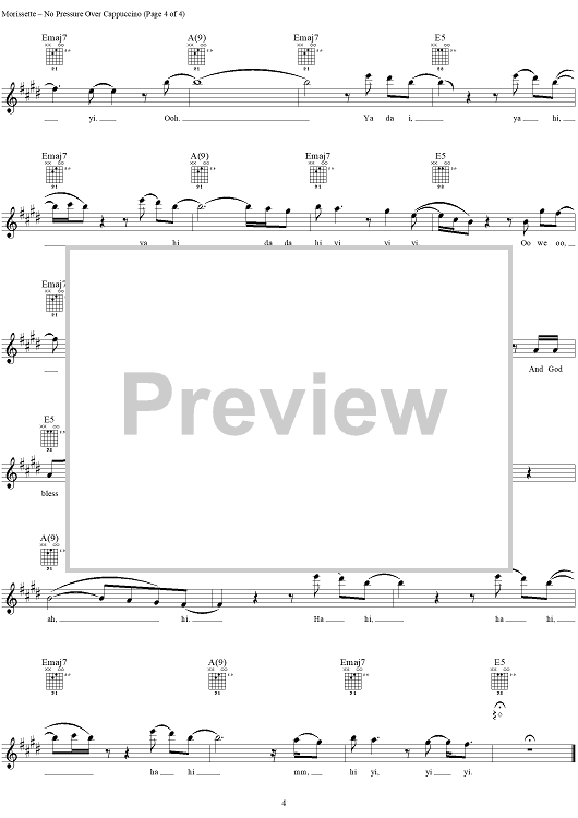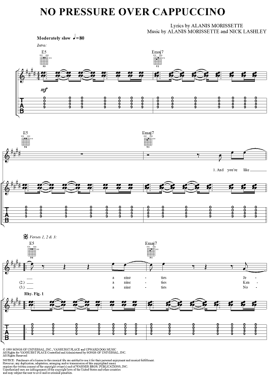 "No Pressure Over Cappuccino" Sheet Music by Alanis Morissette
