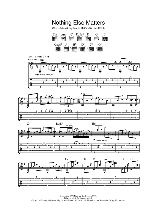 Digital Sheet Music for Nothing Else Matters by Metallica, James Hetfield, Lars Ulrich scored for Guitar Tab; id:394903