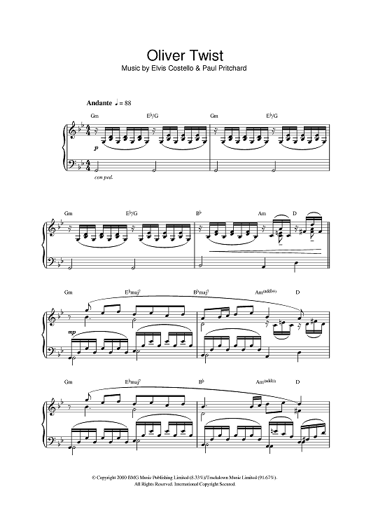 Digital Sheet Music for Oliver Twist by Elvis Costello, Paul Pritchard scored for Piano; id:384756