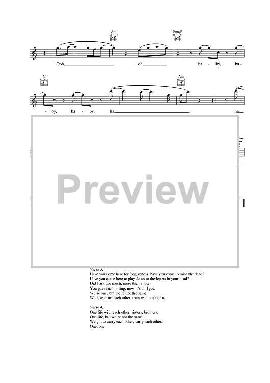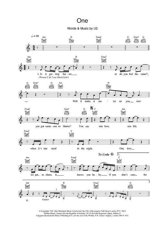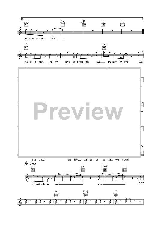 Digital Sheet Music for One by U2 scored for Lead Sheet; id:375782