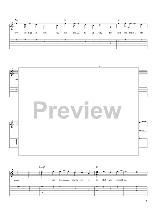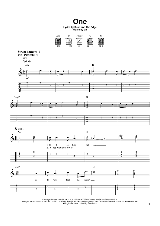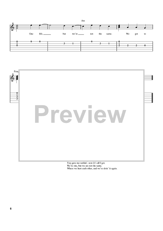 Digital Sheet Music for One by Johnny Cash, U2, Bono, The Edge scored for Easy Guitar Tab; id:387963