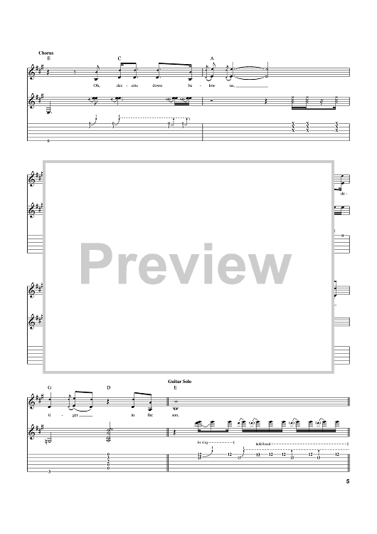 Digital Sheet Music for Paper Tiger by Beck scored for Guitar Tab; id:372695