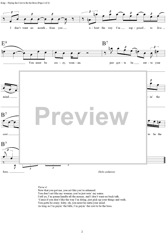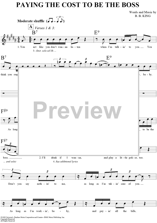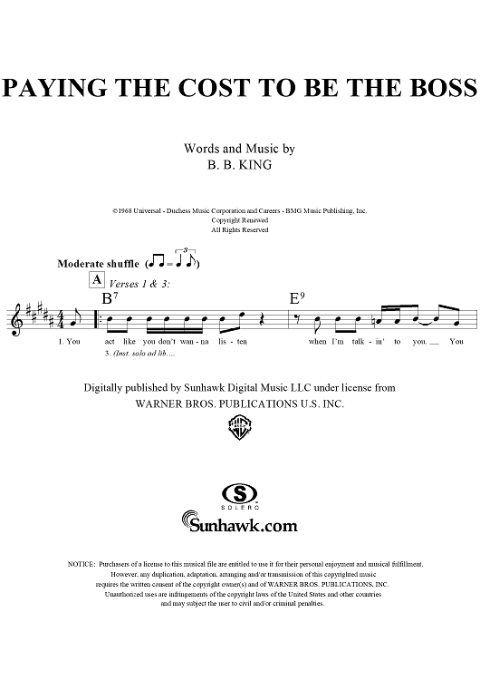 Digital Sheet Music for Paying the Cost to Be the Boss by B.B. King scored for Lead Sheet; id:291585