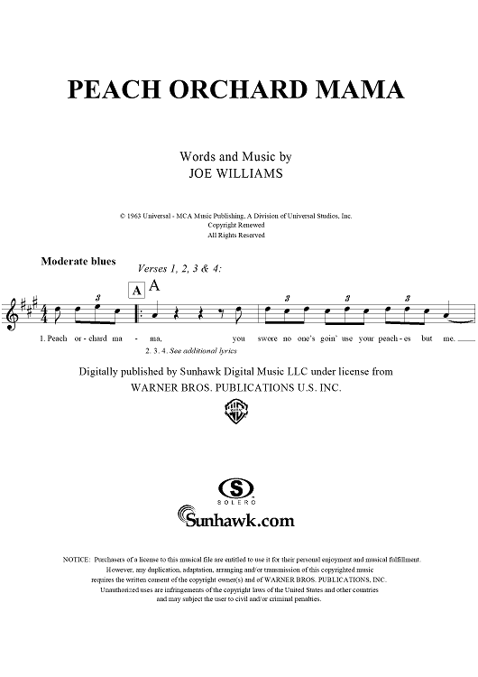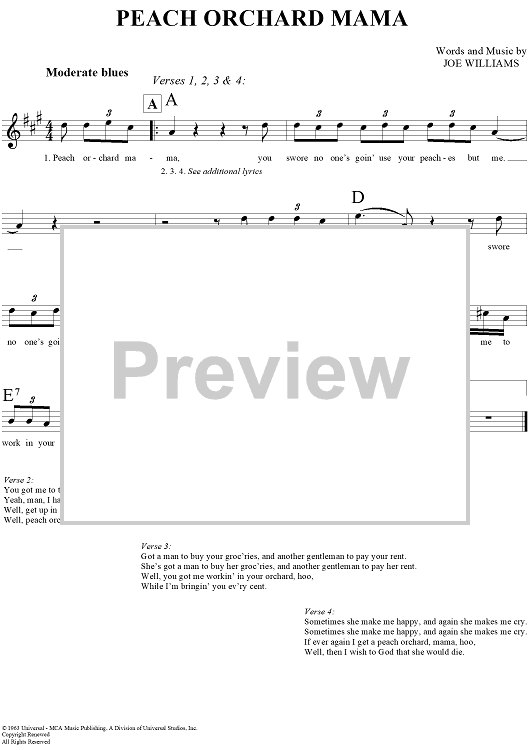 Digital Sheet Music for Peach Orchard Mama by Joe Williams scored for Lead Sheet; id:291587
