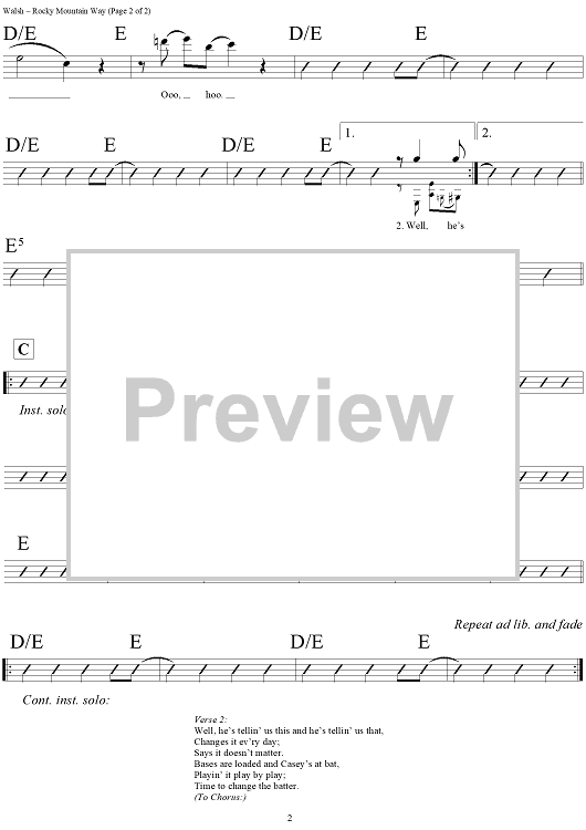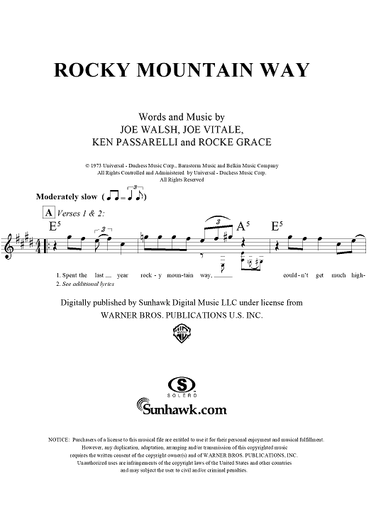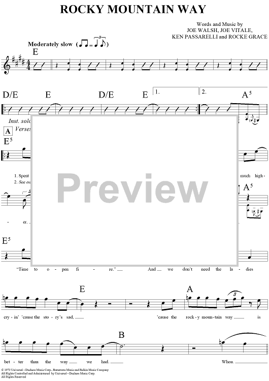 Digital Sheet Music for Rocky Mountain Way by Joe Walsh, Ken Passarelli, Rocke Grace, Joe Vitale scored for Lead Sheet; id:294197
