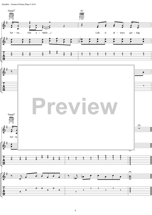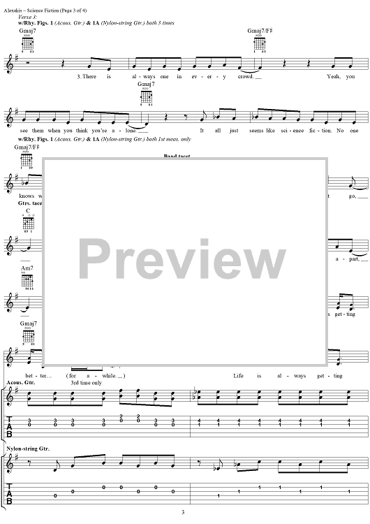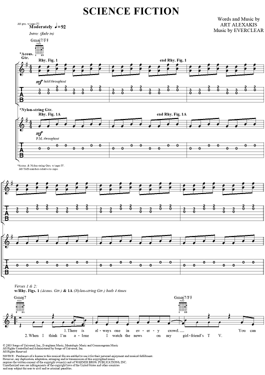 Digital Sheet Music for Science Fiction by Everclear, Art Alexakis scored for Guitar Tab/Vocal; id:303010