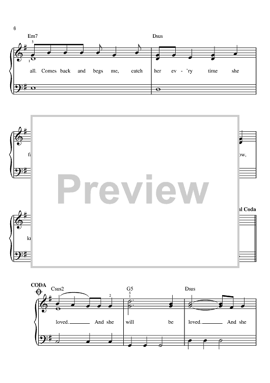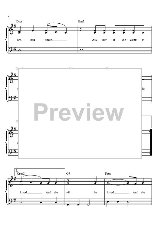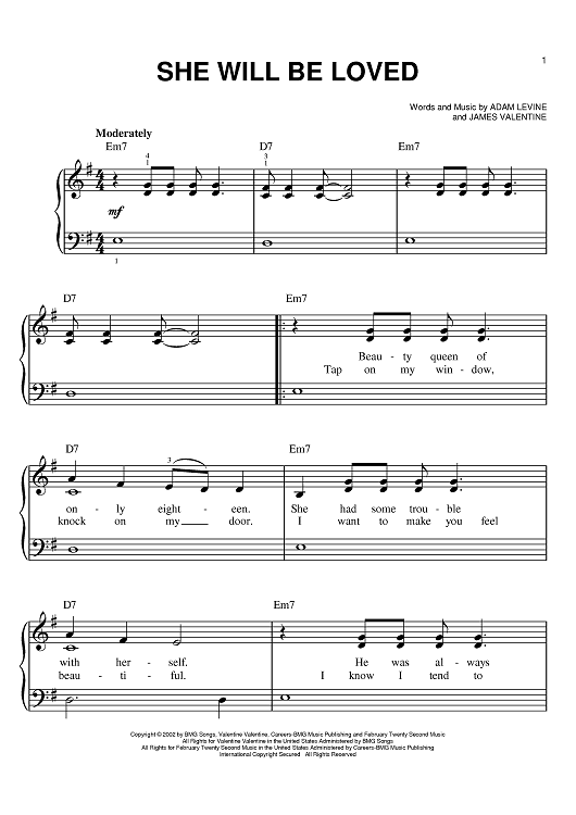 Digital Sheet Music for She Will Be Loved by Adam Levine, Maroon 5, James Valentine scored for Easy Piano; id:386031