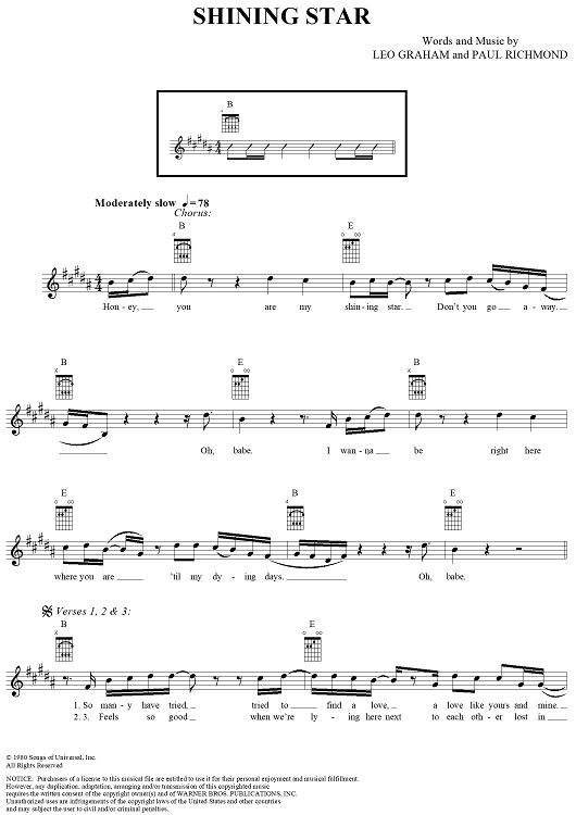 Digital Sheet Music for Shining Star by Jerry Garcia, Leo Graham, Paul Richmond scored for Easy Guitar/Vocal; id:291666