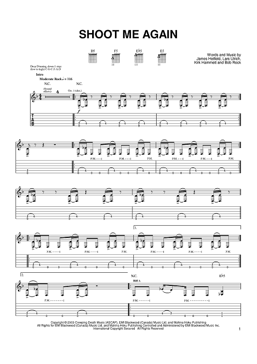 Digital Sheet Music for Shoot Me Again by Metallica, Kirk Hammett, James Hetfield, Lars Ulrich scored for Easy Guitar; id:373694