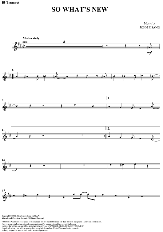 Digital Sheet Music for So What's New - Trumpet in B-flat by Herb Alpert, John Pisano scored for Trumpet/Piano; id:254657