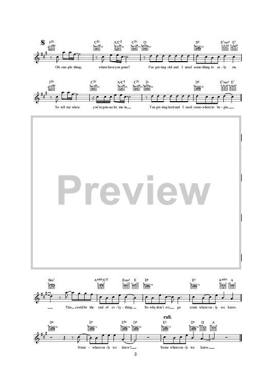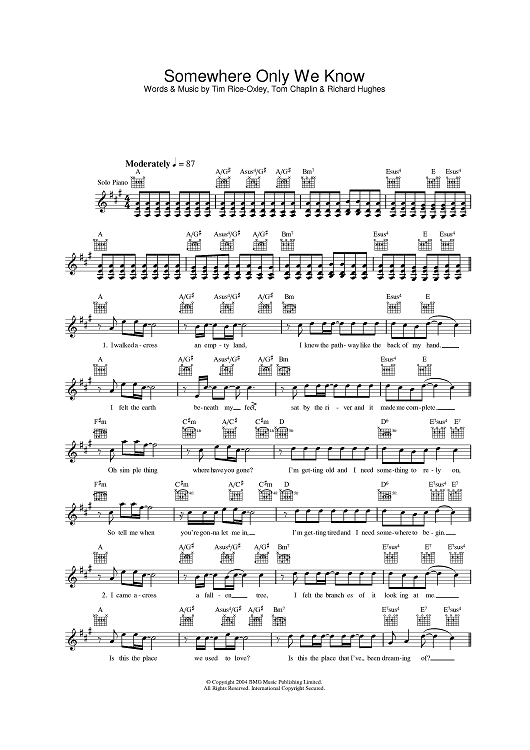 Digital Sheet Music for Somewhere Only We Know by Keane, Tim Rice-Oxley, Tom Chaplin, Richard David Hughes scored for Lead Sheet; id:382887