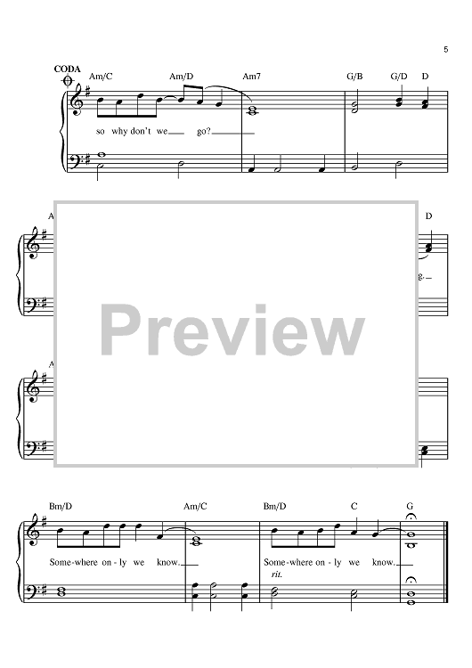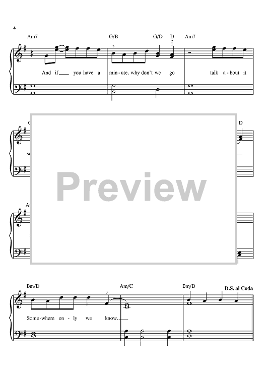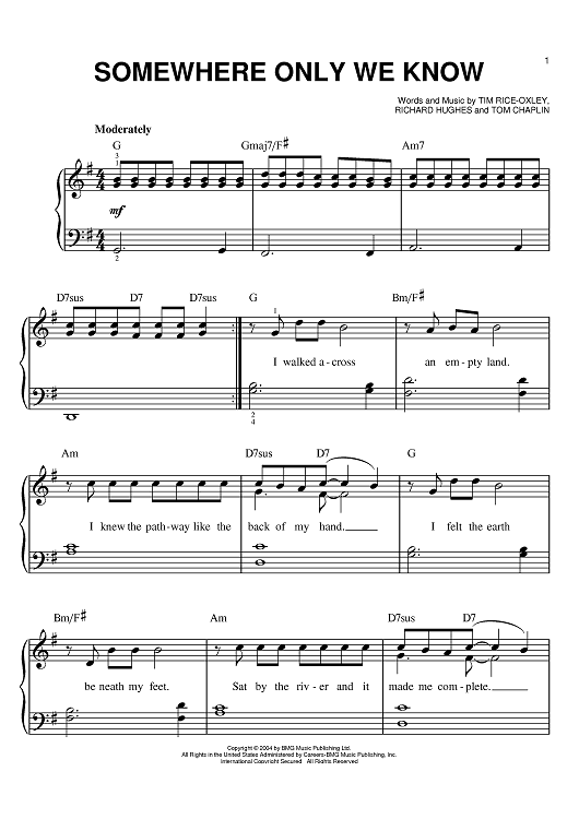 Digital Sheet Music for Somewhere Only We Know by Keane, Tim Rice-Oxley, Tom Chaplin, Richard David Hughes scored for Easy Piano; id:386010
