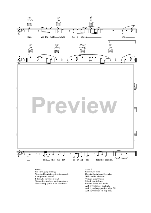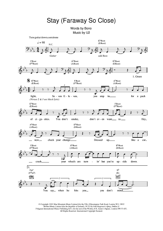 Digital Sheet Music for Stay (Faraway So Close) by U2 scored for Lead Sheet; id:376971