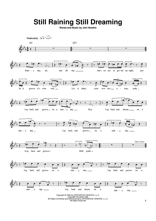 "Still Raining Still Dreaming" Sheet Music by Jimi Hendrix