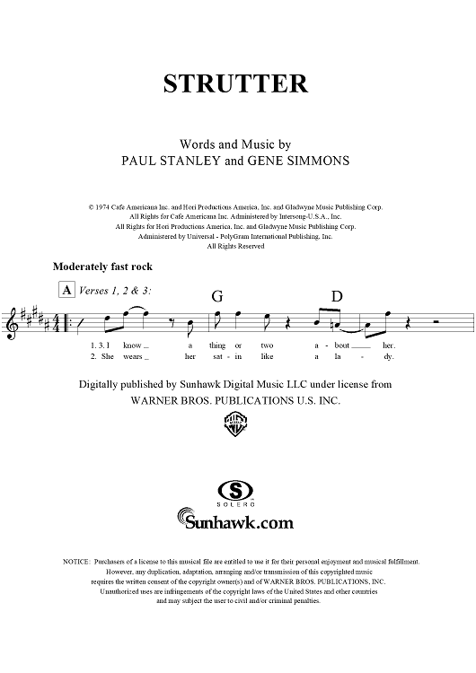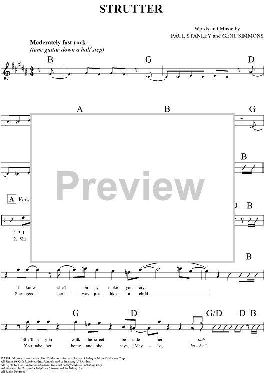 Digital Sheet Music for Strutter by Paul Stanley, Gene Simmons, KISS scored for Lead Sheet; id:293775