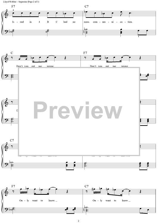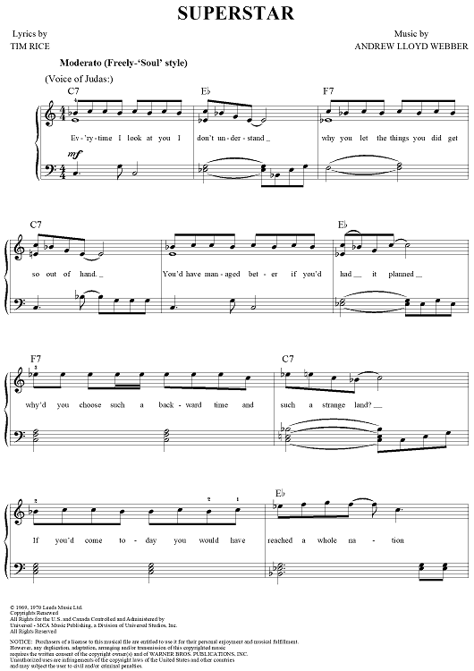 Digital Sheet Music for Superstar by Andrew Lloyd Webber, Tim Rice, Denes Agay scored for Easy Piano/Vocal; id:296493