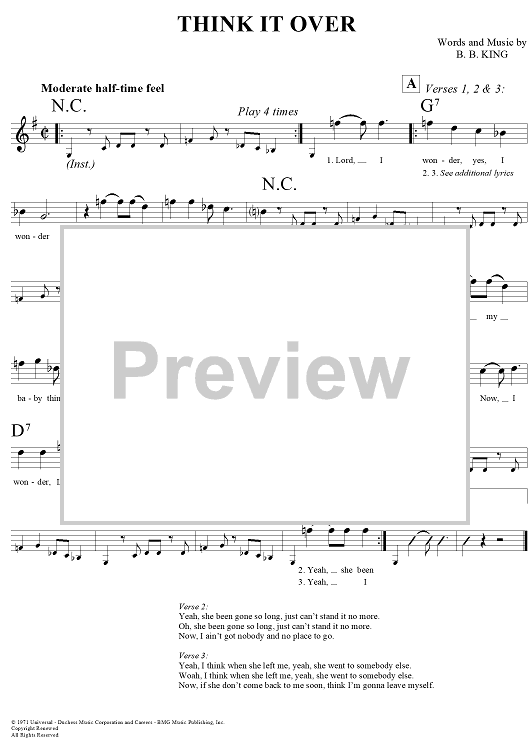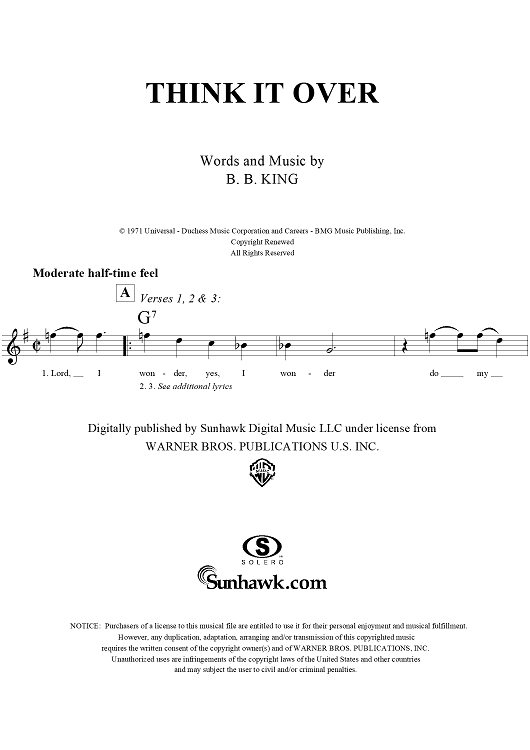 Digital Sheet Music for Think It Over by B.B. King scored for Lead Sheet; id:291753