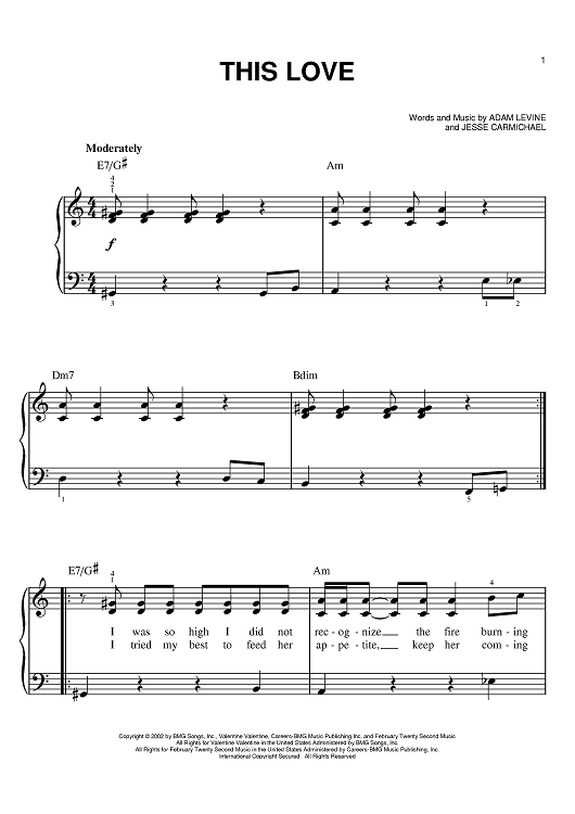 Digital Sheet Music for This Love by Michael Buble, Adam Levine, Jesse Carmichael, Maroon 5 scored for Easy Piano; id:379294