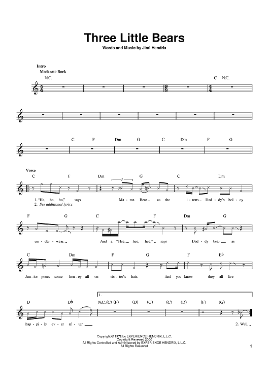"Three Little Bears" Sheet Music by Jimi Hendrix
