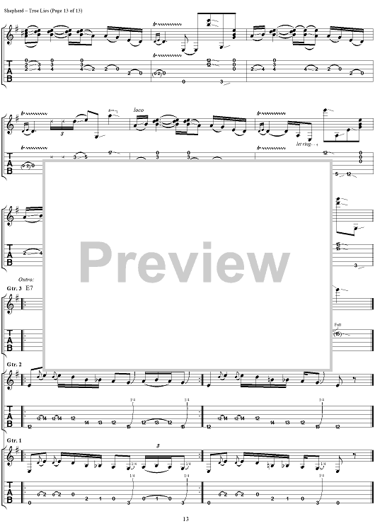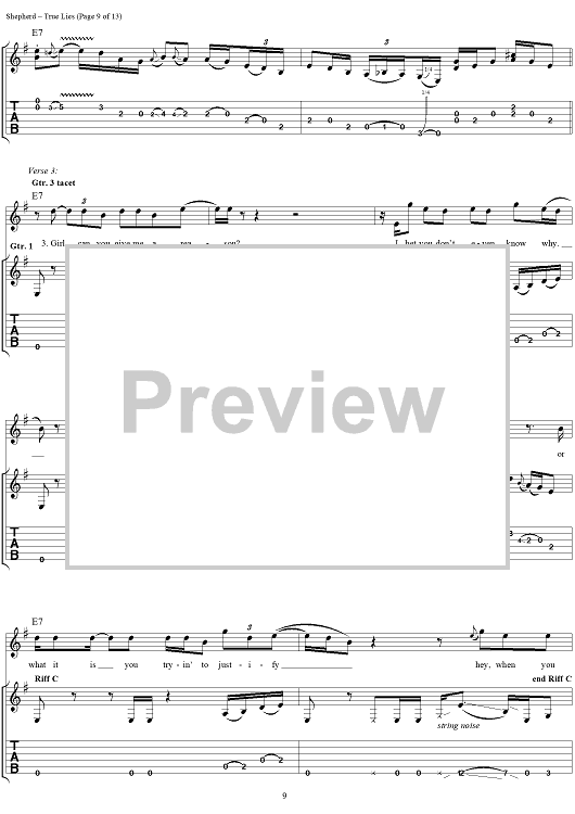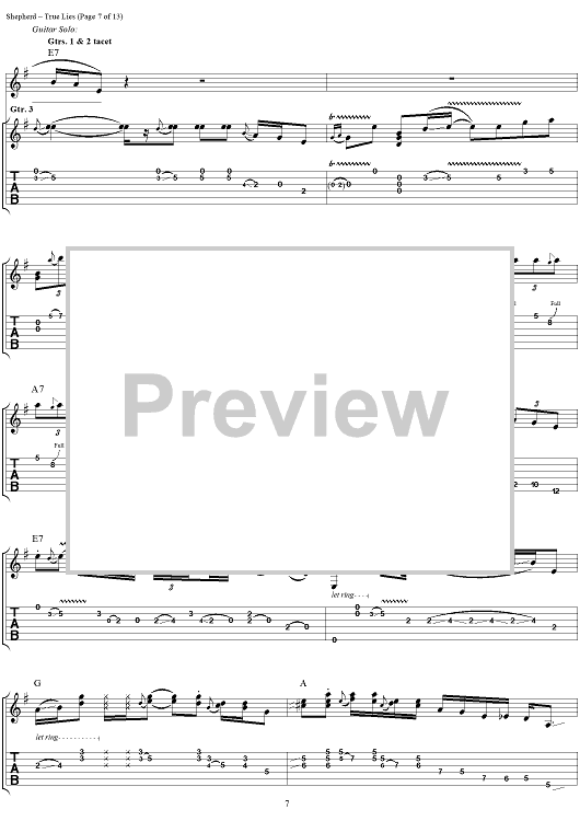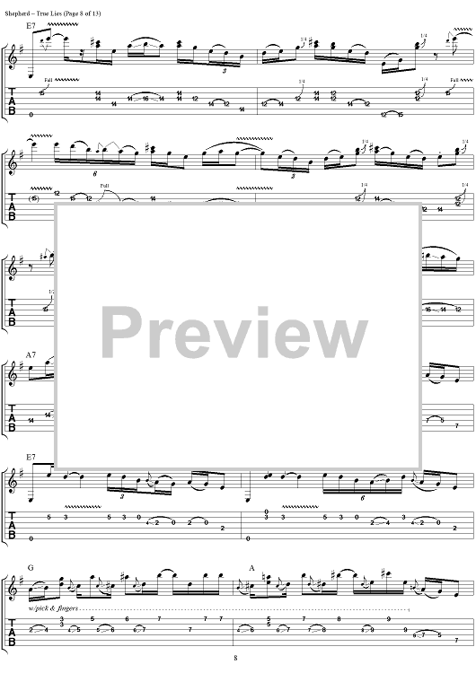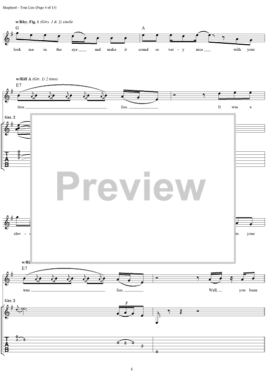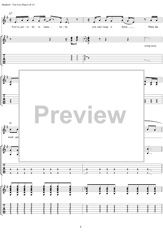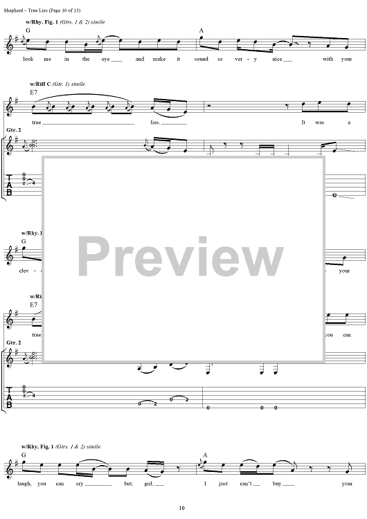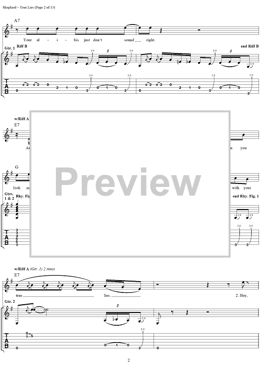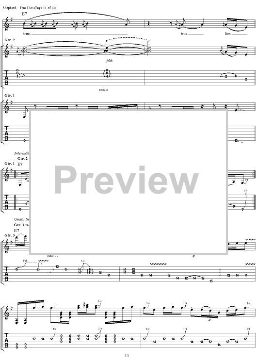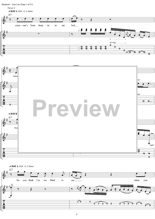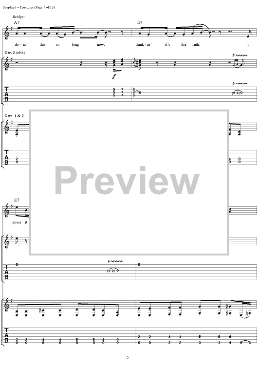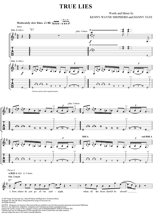 "True Lies" Sheet Music by Kenny Wayne Shepherd Band